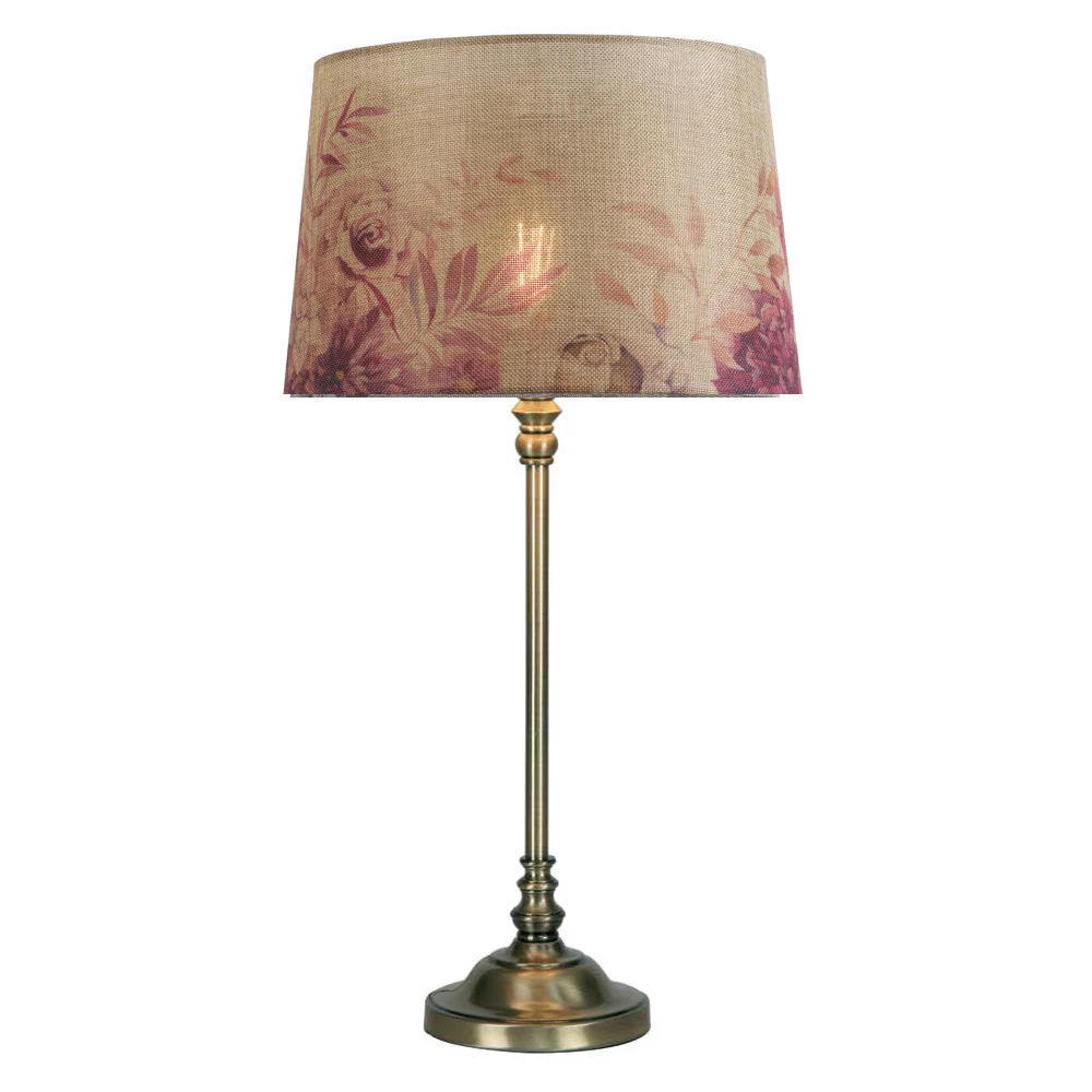 Britalia BRP901/12 RO Beige Linen Rose Design Fabric Vintage Easy Fit Non Electric Pendant & Table Lamp Tapered Drum Shade - 30cm Diameter (12 Inch)