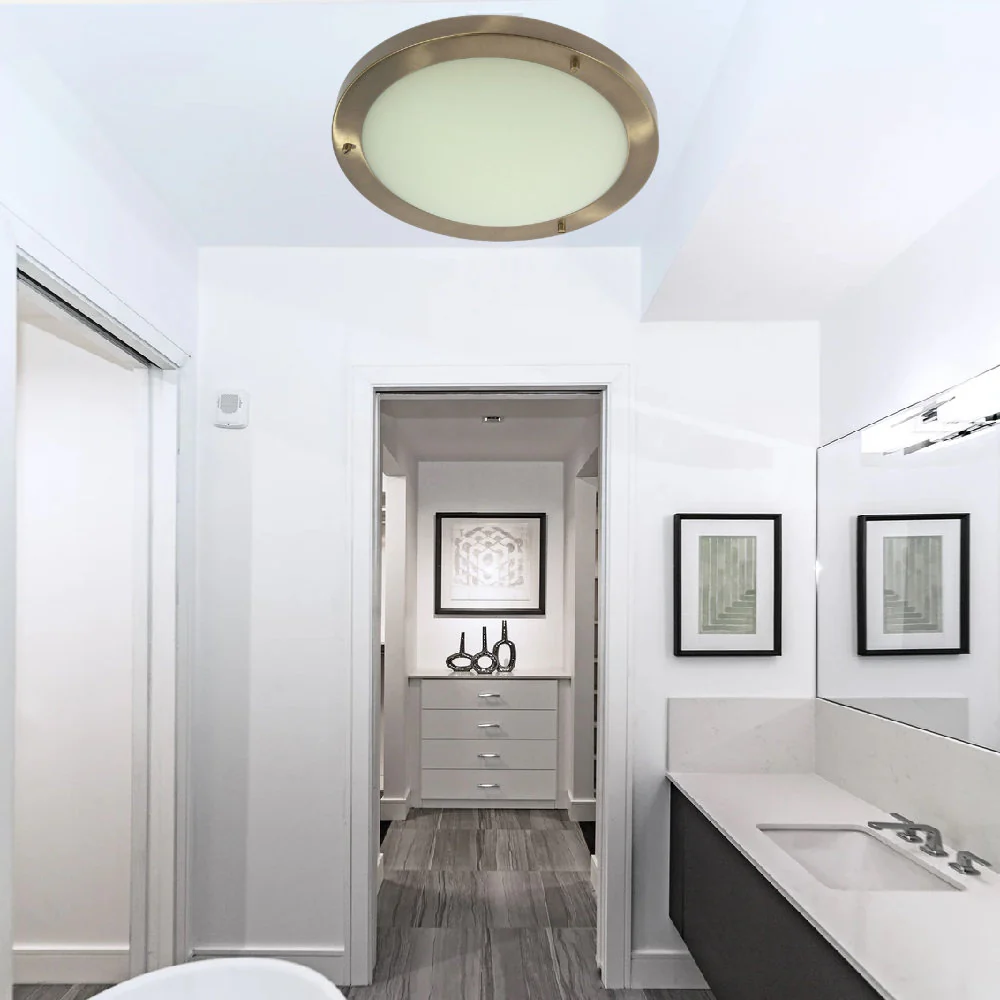 Antique Brass & Opal Glass Bathroom Modern Round Flush Light 31cm