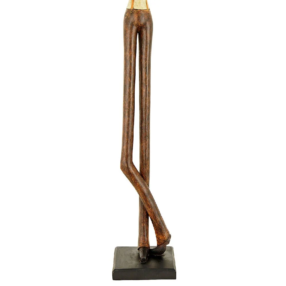 A stunning resin tall standing jazz musician playing the guitar (string) musical instrument art sculpture figurine ornament. Handcrafted, this high definition tall resin figure stands 60cm high and finished in brown and cream main colours. The artwork figure shows a tall, slender leggy cool musician playing music on the guitar or stringed instrument. A perfect gift for music lovers, that will create a talking point in any room in the home. Manufactured from resin with high definition clarity.