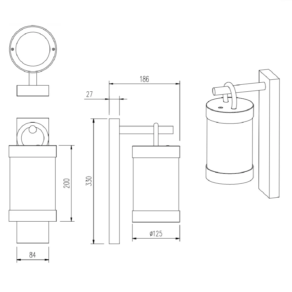 Dimensions: Height 330mm x Width 120mm x Projection 186mm (33cm x 12cm x 18.6cm)