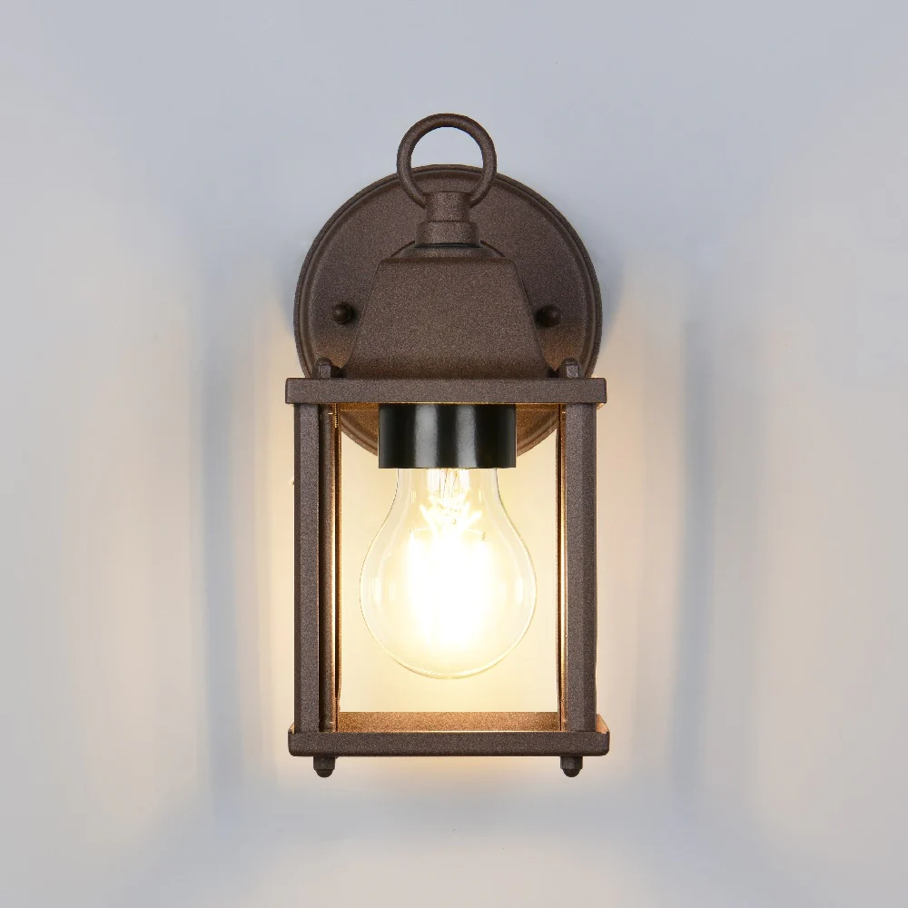 Enhance your home's exterior with this vintage outdoor wall lantern, a timeless rustic bronze wall light fixture designed to bring warmth, style, and reliable illumination to your outdoor spaces. Featuring a classic lantern-style design with clear glass panels, this exterior wall light beautifully showcases the bulb while providing bright, welcoming light.