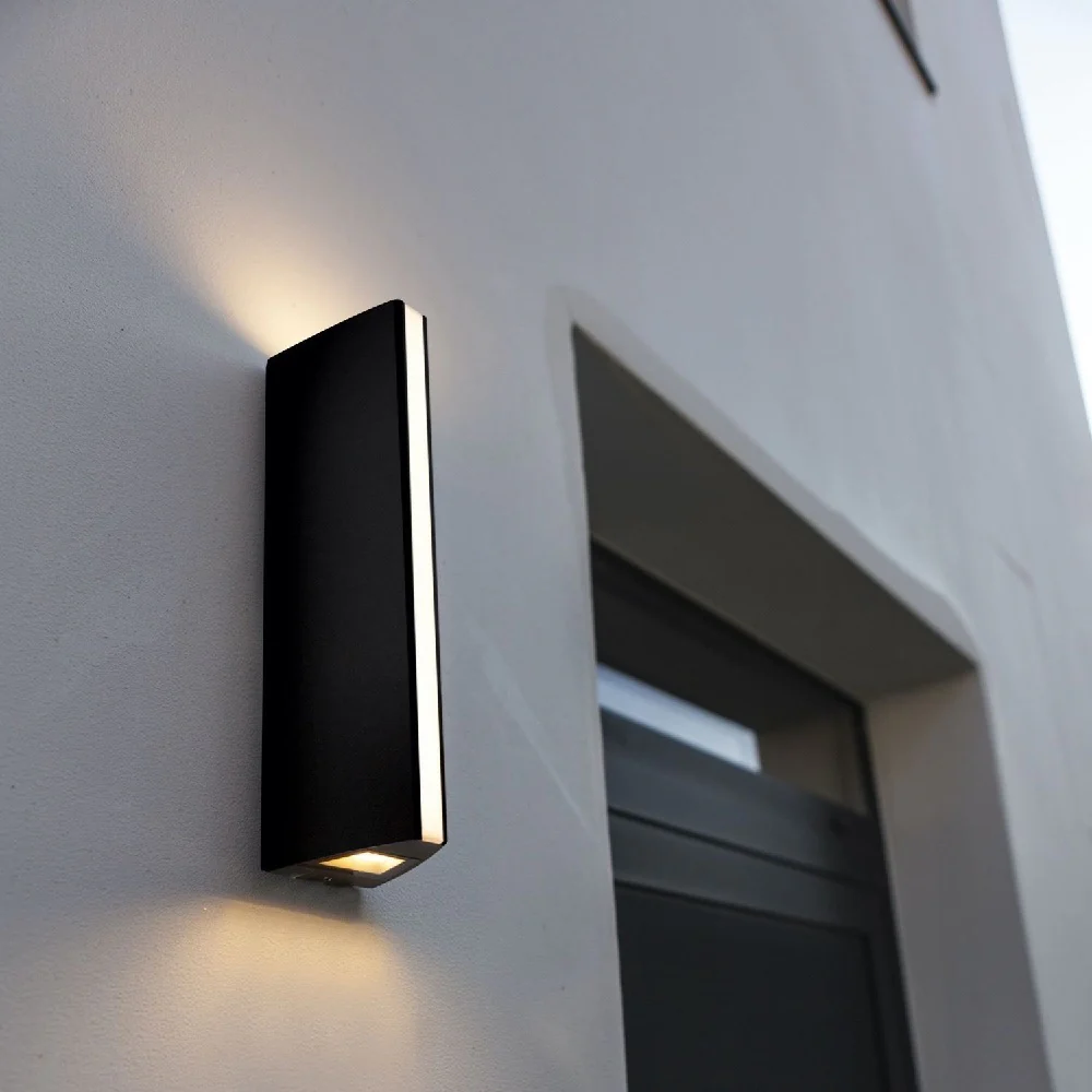 A modern and stylish anthracite dark grey exterior wall light. Unique as it Features a strong light beam up & down and a vertical light strip in the front. This creates a stunning an eye catching illumination when switched on. Perfect for any exterior application and will add a contemporary style on a garden or patio wall. Slimline sleek, perfect for all types of decor taste.