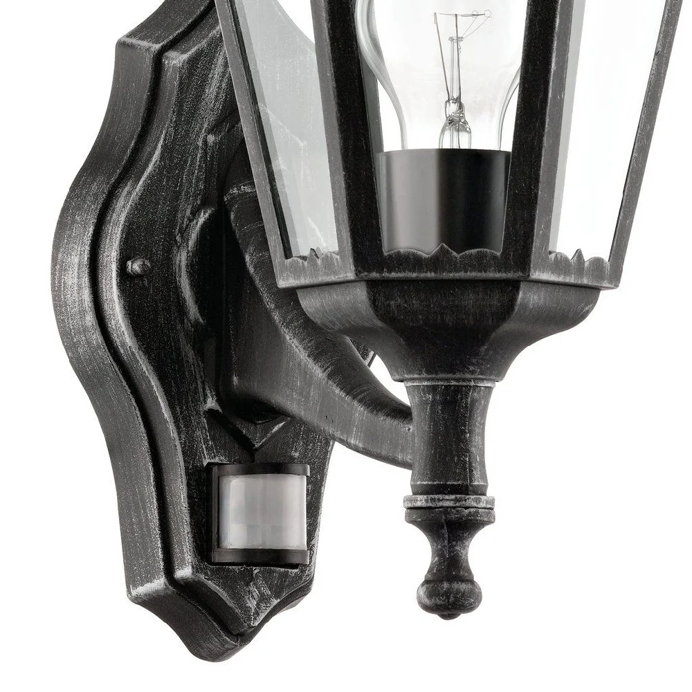 Britalia BR93458 Black Modern Outdoor Single Lamp Up Lantern Wall Light with PIR IP44