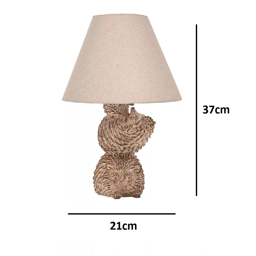 Britalia BRHE2548 Wood Effect Hedgehog Table Lamp with Beige Fabric Tapered Shade - 37cm Height