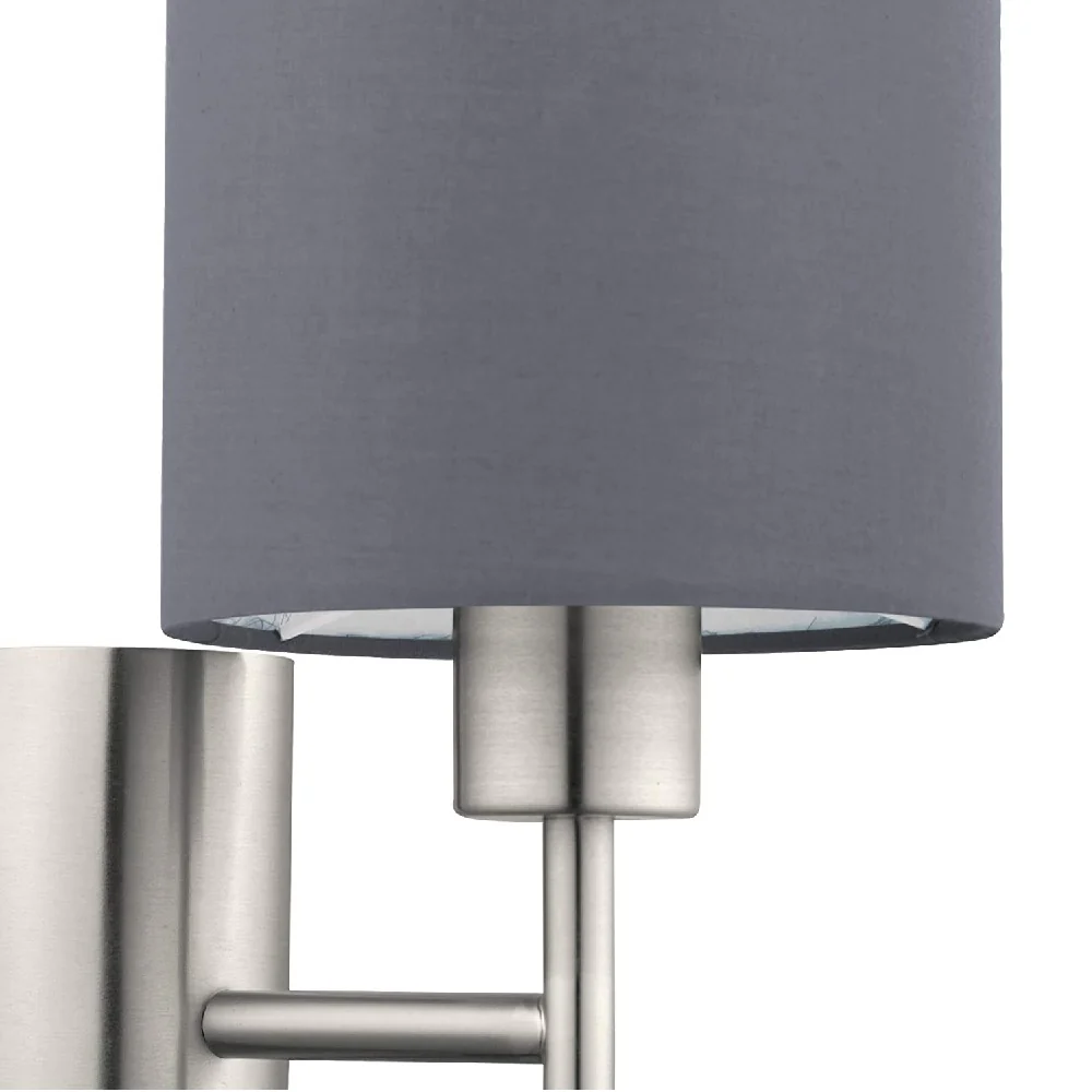 The Britalia 110003 is a stunning indoor wall light finished in brushed chrome with a high quality grey fabric shade. A discreet rocker switch is installed in the base of the stem for isolated use if required.