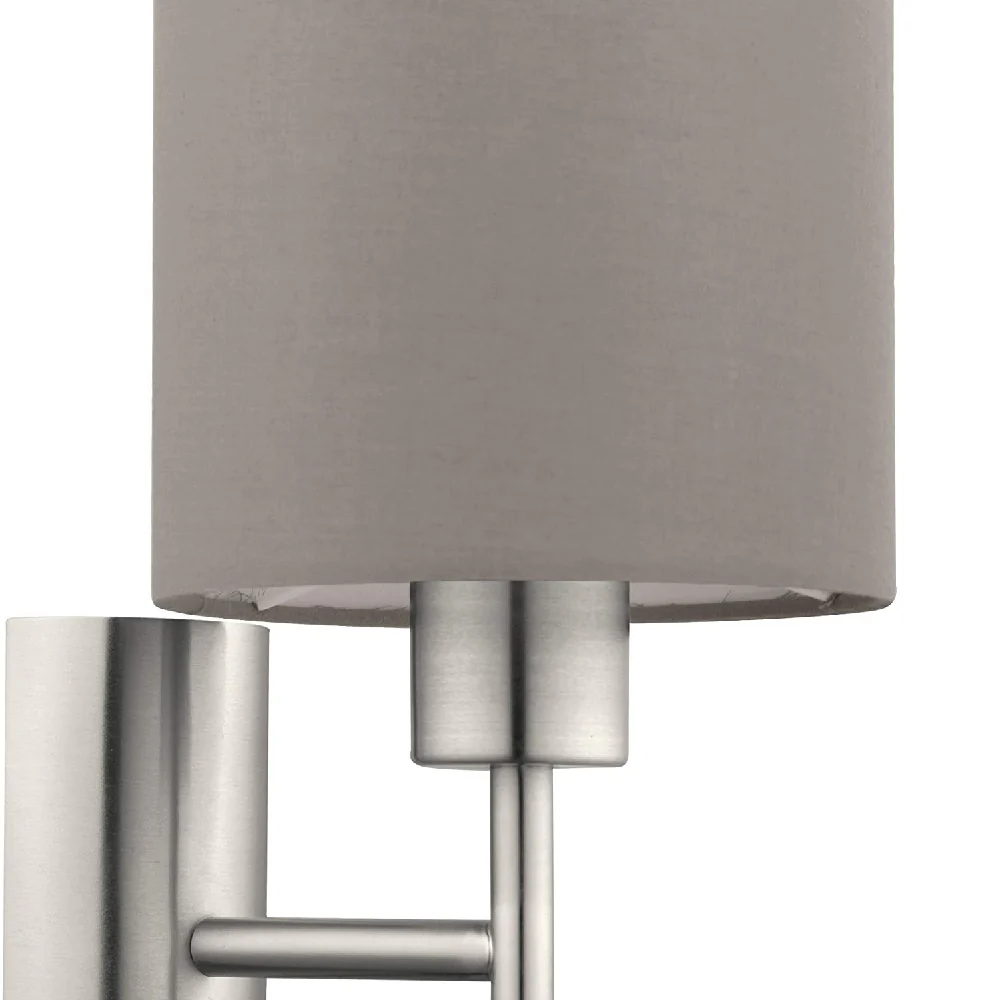 The Britalia 110004 is a stunning indoor wall light finished in brushed chrome with a high quality taupe fabric shade. A discreet rocker switch is installed in the base of the stem for isolated use if required.